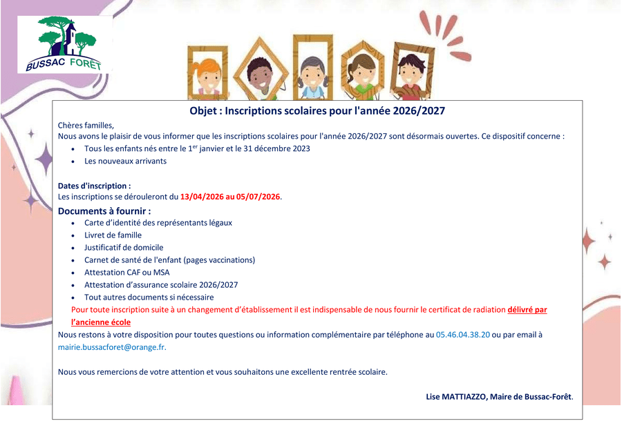 Pour tout renseignement complémentaire, n’hésitez pas à prendre contact avec la mairie.